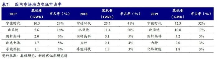 从国内动力电池市场市占率来看,龙头集中不断提升,亿纬锂能从2016年市占率1%,不断提升,2019年首次跻身TOP5,达到3%。