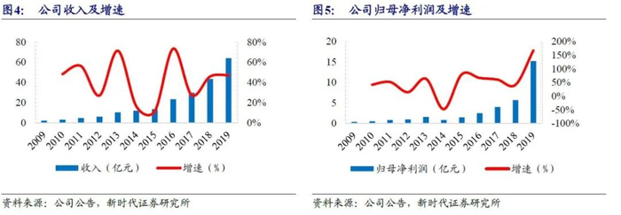 从财务数据来看,公司近十年收入和归母净利润复合增速分别为41%、44%。2019年营业收入64亿元,同比+47%,归母净利润15亿元,同比+167%。