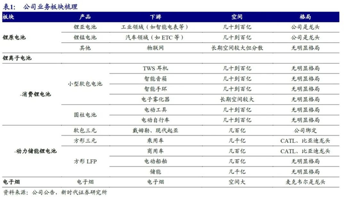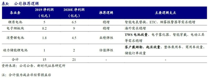 业务分析:锂原电池+电子烟稳增长,消费锂电池有望业绩翻倍,动力储能锂电池有望收入翻倍
