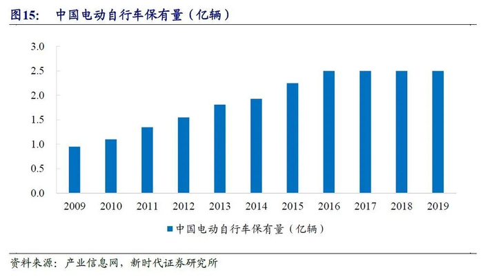 国内电动自行车保有量已达2.5亿辆,未来随着国标升级,更新需求到来,锂电池需求量将保持增长。