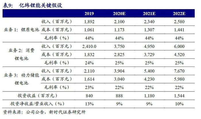 假设公司三大核心业务锂原电池、消费锂电池、动力储能锂电池均保持一定增速,毛利率保持稳定,同时投资收益(主要是麦克韦尔电子烟)稳定增长。