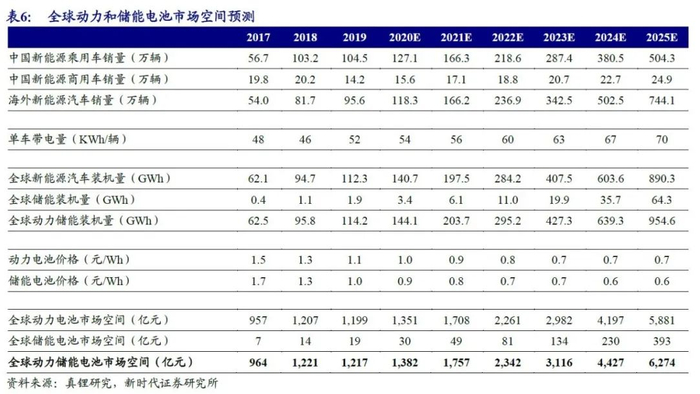 动力和储能锂电池市场空间大,2019年全球动力储能市场空间1217亿元,预计2025年约为6274亿元,约为2019年的5倍。