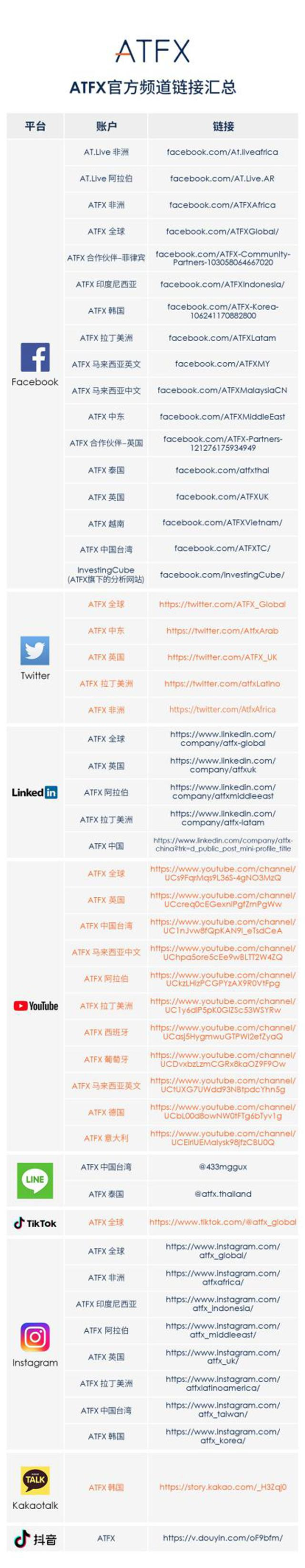 特此声明,如您有任何疑问,请与ATFX官方取得联系,公司官方网站为【www.atfx.com 及www.chinese-atfx.com(简体中文版)】,客服电话400-1200-143,邮箱cs.gm@atfx.com,微信公众号ATFX_China,您也可与在线客服联系。同时,为及时增进和加深客户对我们公司的了解和认识,欢迎大家及时关注我司以下官方频道链接,了解ATFX最新资讯详情,我们将不定期整理和推送全球优质产品资讯及服务。