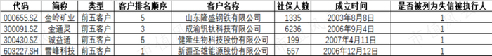 通过提取上市公司2019年报公布的应收账款前五、其他应收账款前五、预付账款前五以及客户前五的具体公司名称,我们将这些公司按照参保人数小于10人、公司成立时间较短(2018年6月后成立)、公司是否被列为失信被执行人等三项风险因子作为条件,对信息进行整理统计。