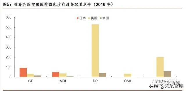 政策因素共振推动设备普及率进一步提升。国家卫健委《大型医用设备配置许可 管理目录(2018 年)》提到,部分设备如 DSA、16 排及以下 CT、永磁磁共振无 需再经审批即可配置,对医疗机构增加配置大型设备将起到正向激励作用。