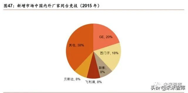 随着国内市场参与者的技术进度和国家政策扶持,增量市场国内外厂家同台竞技。在 2015 年全年新增 MRI 设备中,GE、飞利浦、西门子三家约占市场总额的一 半,其中 GE 以 20%的市场份额排名第一,西门子紧随其后,联影、飞利浦、贝 斯达市场份额均为 8%。联影、东软作为国产磁共振代表,在超导核磁共振领域, 尤其在 1.5T 磁共振市场表现突出,其中联影的 MRI 产品已经实现在国内顶级三 甲医院的装机。MRI 的市场竞争已演变为国内外企业同台竞技的格局。