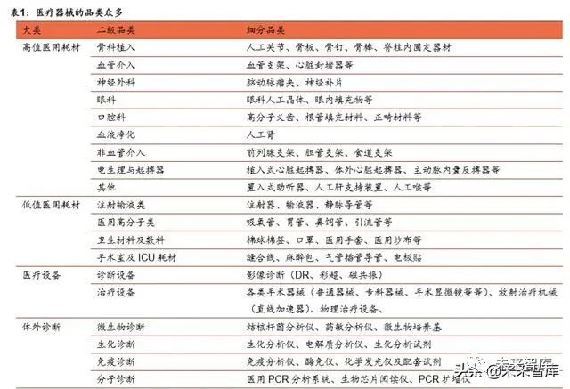 比如医疗设备可以细分成诊断设备(影像诊断如 DR、彩超、磁共振)、治疗设备 (各类手术器械、放射治疗机械)等众多分支;