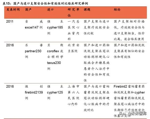 一个典型的例子是我国心血管支架领域的国产替代进程。在内资企业进入第一梯队 之前,国内市场中诸如强生、美敦力、波士顿科学和雅培等国外巨头,彼此之间不 存在根本性差异,不论是市场潜在空间还是市场格局的分散度,都具备国产替代的 优良土壤。随后内资企业微创和乐普医疗研发出技术性能与国外企业相差无几的药 物涂层支架等核心产品,加上价格和营销渠道上的优势,国产产品很快占据了大部 分市场份额,实现了进口替代。