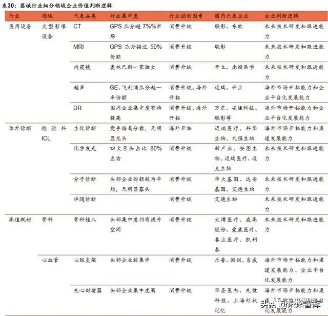 根据前述搭建的器械行业选股逻辑、以及对各重点细分领域格局的的梳理,我们尝 试进一步完成选股流程,梳理行业需要关注的重点企业。