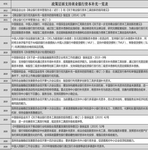 近年来,政策层面支持商业银行资本补充的具体情况,请参见笔者整理的一览表: