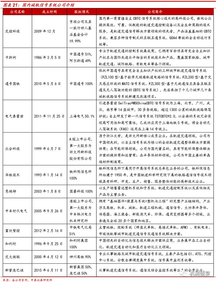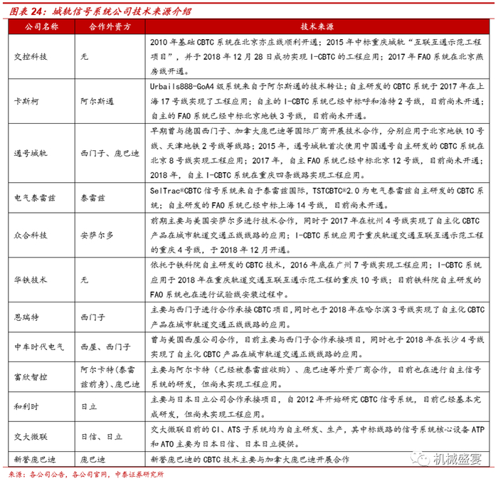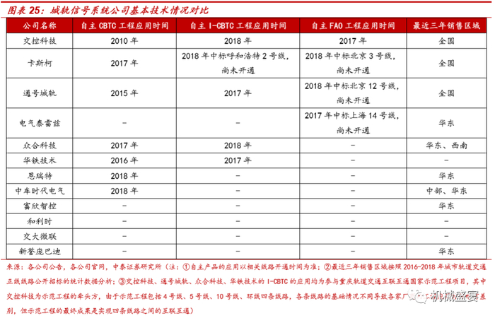 1)交控科技、通号城轨、华铁技术、卡斯柯、众合科技、恩瑞特、中车时代电气等7家公司先后掌握了自主CBTC产品的工程应用;