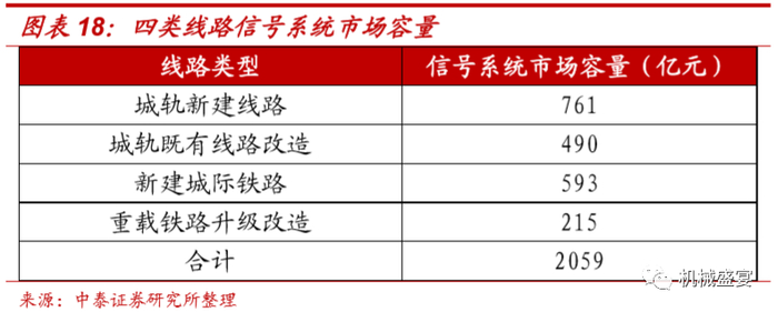 2、城轨、城际、重载铁路信号系统合计市场空间超2000亿元