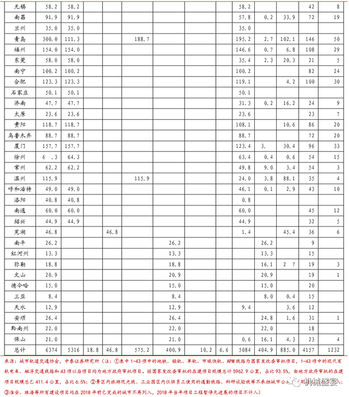 从在建项目来看,截至2018年底,共有63个城市的城轨交通线网规划获批(含地方政府批复的19个城市);其中,城轨交通线网建设规划在实施的城市共计61个,在实施的建设规划线路总长7611公里(不含已开通运营线路),在建线路总长6374公里,可研批复投资额累计42688.5亿元,可见未来5-10年城轨仍将保持较快发展,发展前景广阔。