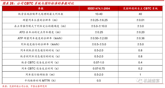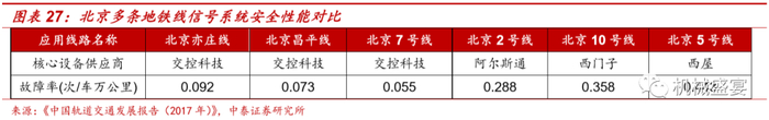 1)在安全性方面,交控科技的CBTC系统达到了IEC安全标准最高的安全等级SIL4级。根据《中国轨道交通发展报告(2017年)》,交控科技的自主CBTC系统在开通第一年的故障率明显低于进口CBTC系统,故障率处于较低水平。