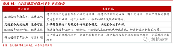 中共中央、国务院印发《交通强国建设纲要》,提出到2020年,完成决胜全面建成小康社会交通建设任务和“十三五”现代综合交通运输体系发展规划各项任务,为交通强国建设奠定坚实基础。其中,交通装备方面,到2050年,铁路将实现3万吨级重载列车和时速250公里级轮轨高速货运列车等方面的重大突破,技术储备研发时速400公里级高速轮轨客运列车系统。建设城市群一体化交通网,推进干线铁路、城际铁路、市域(郊)铁路、城市轨道交通融合发展,完善城市群快速公路网络,加强公路与城市道路衔接。我们认为,《交通强国建设纲要》的推出,对重载铁路和城际铁路建设提出更高要求,信号系统作为其核心设备之一,亦需具备更高的技术水平,行业将迎来发展机遇期。