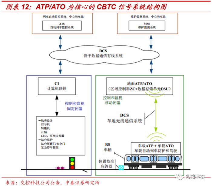 ①信号系统是列车运行的控制中枢,保证列车行驶安全,实现高效运营目标。CBTC系统是城轨信号系统主流产品,FAO、I-CBTC系统是升级产品。