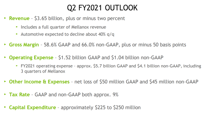 2021财年第二季度的前景(包括Mellanox):
