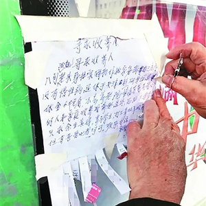 2017年12月,一则名为《儿子移民国外,八旬独居老人街头贴广告求“收养”:我不去养老院,想有个家》的视频在网上热传。视频显示,天津市南开区一位85岁的老人在公交站贴纸条,寻求收养人。