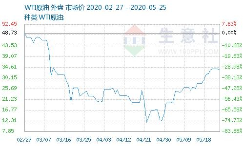 5月22日,美国WTI原油期货市场价格下跌,主力合约结算价报33.25美元/桶,跌幅0.67美元。布伦特原油期货市场价格下跌,主力合约结算价报35.66美元/桶,跌幅0.40美元。