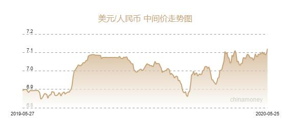 中国人民银行授权中国外汇交易中心公布,2020年5月25日银行间外汇市场人民币汇率中间价为:
