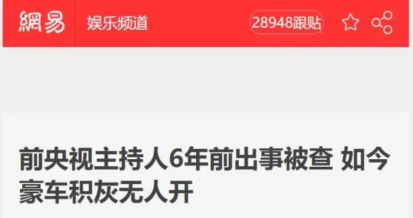 忽然看到一条新闻,前央视主持人6年前出事被查,那辆豪车一直积灰无人开。