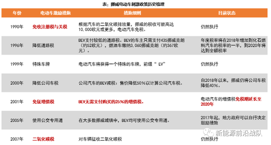 自1990年起,挪威便开始制定电动车刺激政策,2001年首次免除BEV增值税,此项政策已延长至2020年。