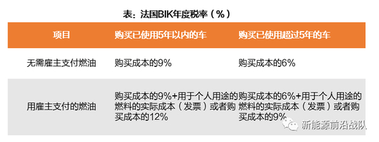 法国:BIK税率与汽车使用年限和是否需雇主支付燃油费有关。使用5年内和5年以上的汽车BIK税率分别为9%和6%,燃油费BIK税率分别为12%和9%。