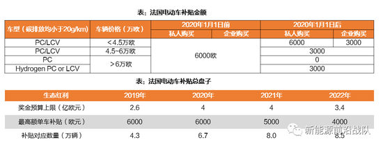 法国电动车刺激政策:生态红利补助电动车,生态罚款征收燃油车、电动车免注册税、TVS(针对公司车),减半BIK税率