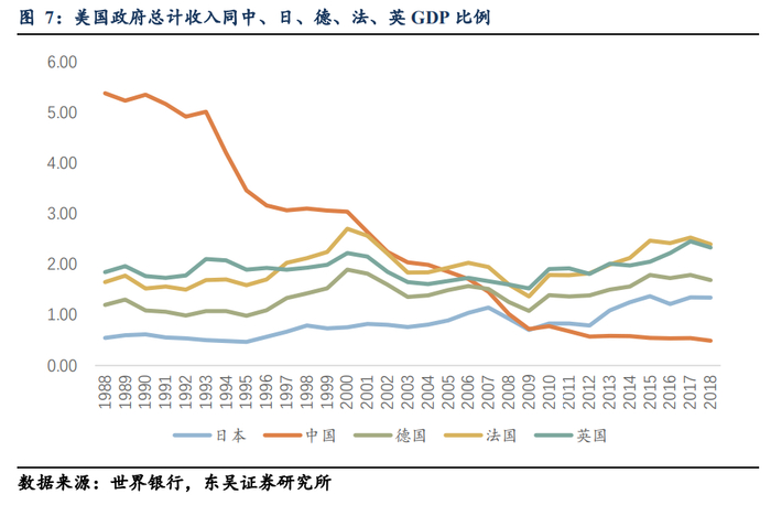 美国政府(包括联邦政府、州政府以及各级地方政府)总计直接收入在2019财年(2018年10月1日至2019年9月30日)达到近7万亿美元,这是一个什么概念呢?7万亿美元的美国政府总计直接收入约为2019年日本名义GDP的1.34倍,德国的1.69倍,法国的2.40倍,英国的2.33倍;这意味着美国政府的总计直接收入可以购买德、法、英任意两国在2019年全年创造的所有总产出。