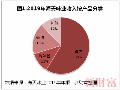 2019年,酱油、蚝油、调味酱的营业收入占总营收的88%,为海天的三大主力产品(图1)。