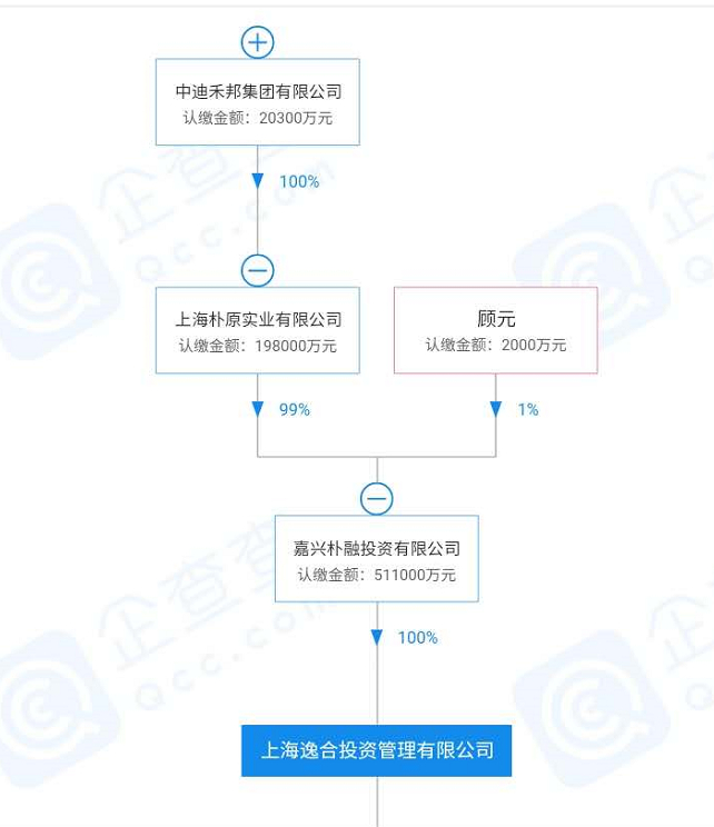 从股权关系上溯源,上海逸合为总部位于四川成都的百强房企中迪禾邦的下属企业。2019年6月4日,上海逸合大股东上海朴原实业有限公司的股东从自然人顾元变为中迪禾邦集团有限公司。