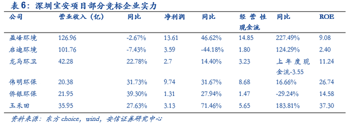 由于大多数环卫企业没有上市,无法查阅财务数据,所以仅从目前已经上市,并且通过资格预审的六家环卫企业中,对2019年的业绩进行简要对比。净利润达到30%的企业只有3家,分别是盈峰环境、玉禾田和伟明环保。