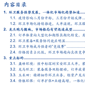 ■我们在2月16日发布的环卫深度《环卫扩张有力,刚需属性再迎良机》里已明确阐述,环卫服务作为居民生活刚性需求,市场空间未来会随着居民生活水平提高而不断扩容,环卫一体化趋势明显,综合性更强。即使经历了疫情的影响,环卫市场后续扩张仍值得重点关注。