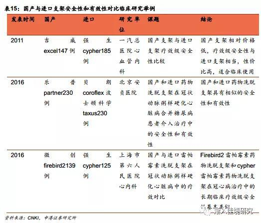 又比如心脏支架,作为技术含量高、典型的创新驱动型产品,需要不停地更新换代。第一代,单纯球囊扩张技术:发明于1977年,1980年后期开始在临床广泛应用,缺点是扩张后容易回缩,术后狭窄率高。第二代,金属裸支架:1993年诞生后解决了单纯球囊扩张后“回缩”的问题,迅速成为主流,1998年75%的PCI会在球囊扩张后植入支架,目前这一比例提升至85%以上,但是术后狭窄率仍然较高。第三代,药物涂层支架:即在支架表面涂上紫杉醇、西罗莫司等抑制增生药物,跟金属裸支架比,可以显著降低术后再狭窄率,2002年上市后迅速替代上一代金支架,目前70%以上的冠脉支架为药物涂层支架,国内这一比例接近100%。第四代,可吸收支架:部分解决了支架术后再狭窄难以干预的问题,最早由雅培研发的Absorb于2012年底在欧洲上市,截止2014年,全球植入Absorb患者超过2.5万人。