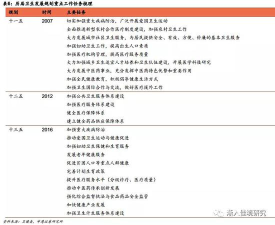 我们认为,除了之前阐述的长线逻辑,行业近15年的高速增长主要有需求端和供给端两方面因素。需求端的主要因素是某些边际事件造成的短期需求波动;供给端,则表现为政府适应不同阶段的发展需求,对政府卫生支出和卫生资源配置的调整,集中表现为不同时期国家卫生发展规划的工作中心的转移。接下来我们将详细剖析整个变迁过程。