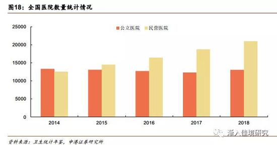 与扶持社会办医政策相配套的是民营医院医用设备配置的放开。卫计委2018年10月29日颁布的《关于发布2018—2020年大型医用设备配置规划的通知》指出:不以医疗机构等级、床位规模等业务量因素作为非公立医疗机构的主要配置标准;配置大型医用设备不分所有制、投资主体、隶属关系和经营性质,实行统一规划、准入、监管。随着社会办医阵营的持续发展,目前无论是医疗机构家数还是床位数量,都已超过公立体系,成为医疗器械的另外一个大市场。