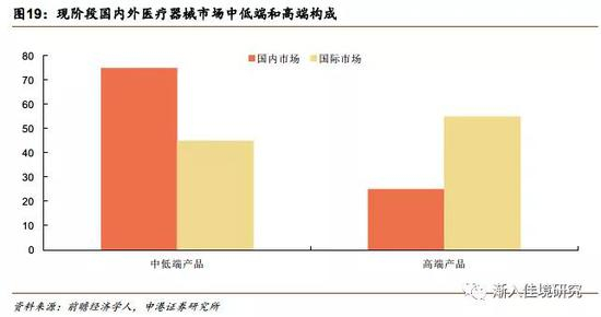 我国医疗器械中高端消费仍有提升潜力。现阶段我国医疗器械市场的基本构成为高端产品占比25%,中低端产品占比75%。而国际市场中的医疗器械产品基本构成为高端产品所占份额一般为55%,中低端产品占45%。