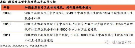 在随后的三年间,根据国务院配套发布的《医药卫生体制改革近期重点实施方案(2009-2011年)》所规定的五项重点改革任务要求,国家在每年的《医药卫生体制改革年度工作安排》中,对基层医疗卫生体系建设提出了明确的数量要求。