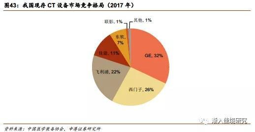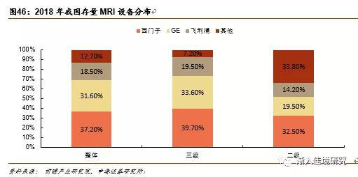 存量市场GPS占据绝对份额。GE、飞利浦、西门子三家约占存量市场总额的70%左右,其中三级医院国外巨头的总份额超过92%,二级医院稍低,三者的合计份额月66%。