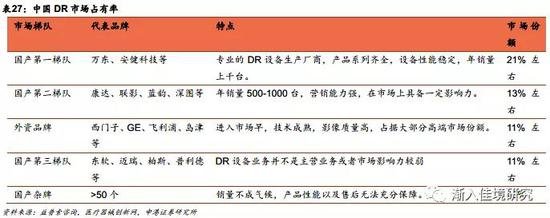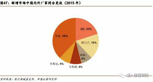 值得关注的是,国内龙头企业东软和联影医疗分别取得了19%和10%的订单份额,进入第一梯队。除此之外的安科也有5.3%的份额。