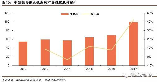 根据medworld的研究,2013年到2017年MRI设备市场保有量由4376台增加到8289台,期间复合增长率达到了17.3%。根据《2018-2020年全国大型医用设备配置规划》,到2020年底,1.5T及以上磁共振成像系统(1.5T及以上MRI),全国规划配置9846台,其中新增4451台。
