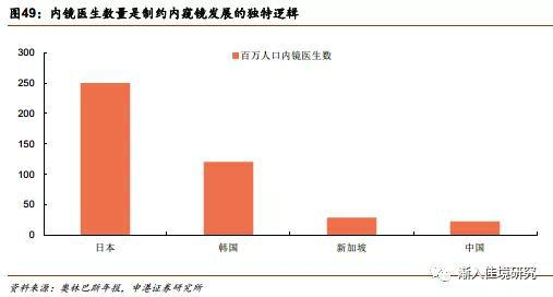 受制于内镜医师不足,我国软镜普及率仍处在较低水平。当前我国有约3万名内镜医师,每百万人口拥有的内镜医师数量仅有约22人。软镜普及率高的日本和韩国每百万人口拥有的内镜医师数量分别达到250人和120人。