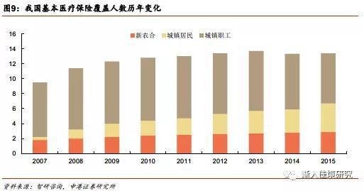 基本医保覆盖深度不断提升。过去由于制度缺陷,城镇居民医保的实际报销比例仅为52.3%,新农合的实际报销比例仅为49.2%。自从我国在2009年开始实施医改以来,医保改革向深向广,国家不断出台政策提高医保保障深度,有效刺激居民医疗需要向需求的转化。