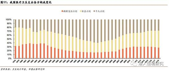 03年的SARS,政府意识到国家基础医疗卫生服务体系的薄弱,此后政府卫生投入水平持续高速增长,个人卫生支出比例也随之逐年下降。