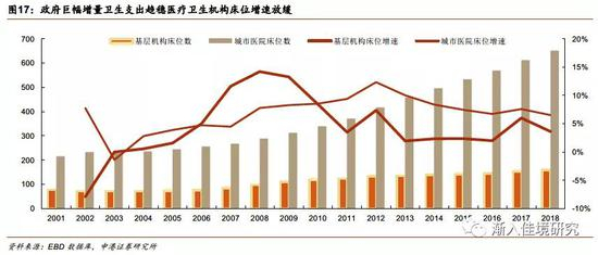 新医改期间为扩充医疗资源存量规模而提供的巨量政府卫生支出增加,将不会再次出现。这一点,可以从近几年国家基层医疗卫生机构床位增速放缓得到印证。我们判断,在接下来的5年中,如果不发生重大边际事件,国家政府卫生支出和医疗器械行业增速将继续保持相对平稳。