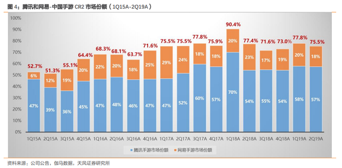 游戏在过去二十年人们的生活中扮演越来越重要的角色,强劲的研发实力确保了网易的江湖低位。网易在中国游戏产业发展历史上,多次凭借“产品为王”,成为绝境的破局者。从端游时代开始,在盛大起步于代理自韩国的传奇,九城因美国的魔兽腾飞的阶段,只有网易依靠着的自主研发的《大话西游》、《梦幻西游》与这些舶来品分庭抗礼。面对靠抄袭和套路“赚快钱”的手游市场,网易坚守技术和自研的基因,旗下卡牌类手游《阴阳师》开发过程接近20个月,在2016年一经推出,就成为了现象级产品。