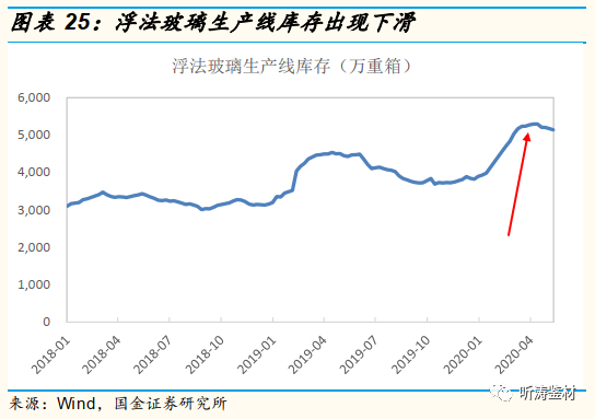 2020年4月份开始,随着复工复产的推进,下游需求开始恢复、物流运输趋于正常,部分窑龄到期产线也选择在这一阶段集中冷修,供需基本面不断好转。此外,玻璃原片厂家也在频繁向下调整价格,用以消化库存。2020年4月底,玻璃价格跌至67元/重箱,玻璃库存降至5188万重箱。