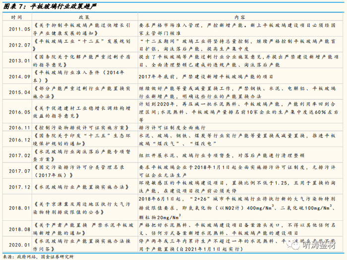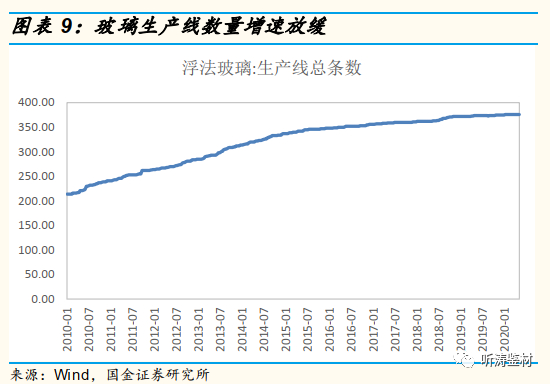 2016年5月,国务院发布《关于促进建材工业稳增长调结构增效益的指导意见》(34号文),在2020年底以前,严禁备案或新建扩大产能的平板玻璃项目。产能置换政策也更加严格,2018年1月,工信部印发的《水泥玻璃行业产能置换实施办法》要求,环境敏感区的平板玻璃建设项目,置换比例不低于1.25,且用于置换的淘汰产能,在建设项目投产前必须关停。2018年8月,工信部、发改委联合印发《关于严肃产能置换 严禁水泥平板玻璃行业新增产能的通知》,要求从严审核产能置换方案,坚决禁止新增产能。从政策执行情况来看,新增产能的扩张确实得到了一定程度的控制。2020年1月,工信部在《水泥玻璃行业产能置换实施办法操作问答》中指出,停产两年或三年内累计生产不超过一年的平板玻璃生产线不能用于产能置换。