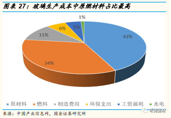 根据中国产业信息网数据,原材料占到玻璃生产成本的43%,而纯碱占到原材料成本的54%,燃料成本占玻璃生产成本的34%。因此,纯碱和燃料价格变动是影响玻璃企业盈利水平的两个重要因素。