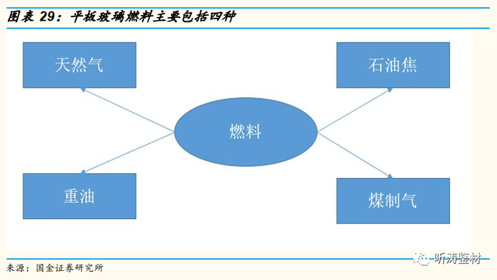 原材料和燃料是平板玻璃生产过程中最主要的成本支出。不同玻璃厂家原材料使用情况区别不大,多是纯碱、石英砂等,但燃料结构不尽相同,主流的种类包括天然气、石油焦、重油和煤制气。